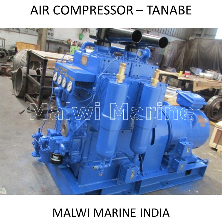 MALWI MARINE supply recondition AIR COMPRESSOR for marine application, ready in stock with load testing and comprehensive technical reports. Including most known brands such as SPERRE, TANABE, HATLAPA, J.P. SAUER, HAMWORTHY, YANMAR, ATLAS CAPCO. Our major strengths are Extensive Huge Stock, Abundant experience of 65 years in engineering, Workshop near Indian shipbreaking yard approved by class for all N.D. test facility, Worldwide supply from India and Dubai.